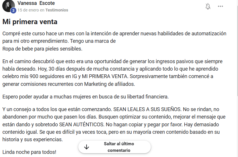 Tendrás acceso a una comunidad exclusiva que ofrece un chat de apoyo entre personas que también han empezado en el negocio. Es una oportunidad de networking y crecimiento personal