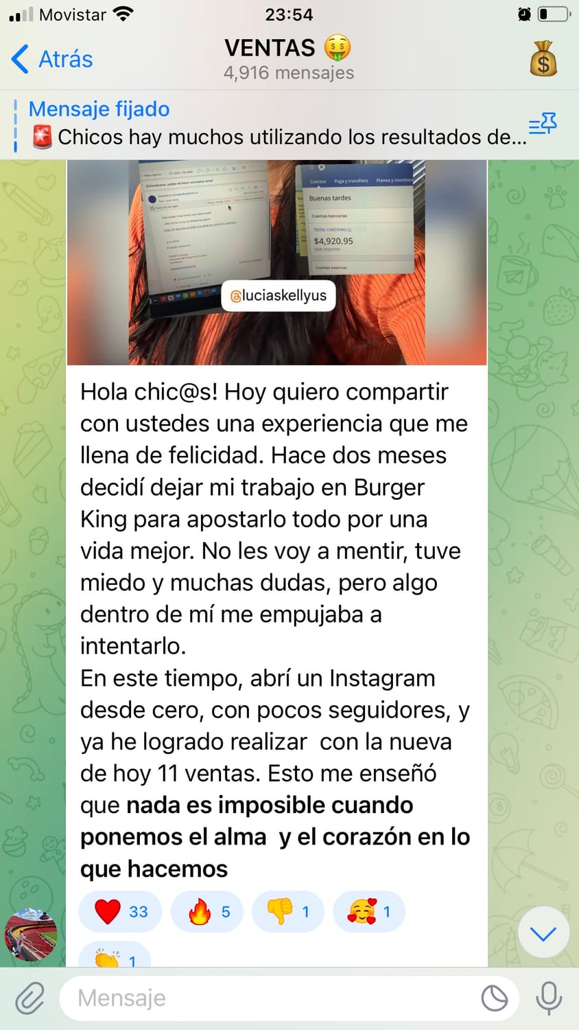 Sentía que debía intentar algo más, asi que no me di por vencida hasta que un día vi a una chica en Instagram que ganaba dinero desde casa vendiendo productos digitales y con sus redes sociales.